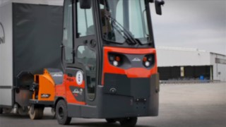 El tren en su conjunto se asegura mediante un inmovilizador y no puede ponerse en movimiento hasta que se hayan elevado todos los bastidores de carga. Los tractores de arrastre incorporan un sistema de asistencia al conductor que reduce automáticamente la velocidad en las curvas, a fin de prevenir vuelcos. Todos los módulos de remolque de los trenes logísticos Linde están conectados entre sí y al vehículo tractor mediante cables de datos. De este modo, el conductor puede manejar centralizadamente desde la cabina todos los bastidores de elevación. Se le indica de un solo vistazo si todos los bastidores de elevación se han elevado para el transporte. Sin embargo, también es posible manejar cómodamente mediante interruptor de pedal cada bastidor de elevación individual en el respectivo remolque. Además, el sistema de manipulación reduce el esfuerzo de la espalda. Por ejemplo, si se requiere una protección especial contra la intemperie, esta puede colocarse y retirarse fácilmente mediante una palanca mecánica, sin que el conductor tenga que agacharse.